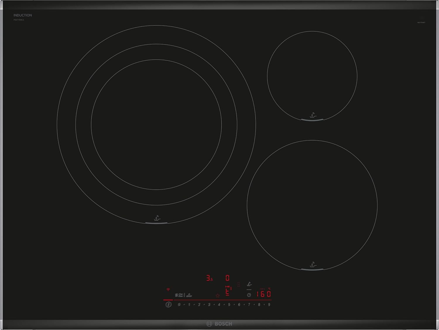 Bosch - Placa de Inducción, 70 cm, Serie 6, 3 Zonas de Cocción, Electrónica DirectSelect, PerfectFry Plus, Home Connect, Negro, PID775HC1E