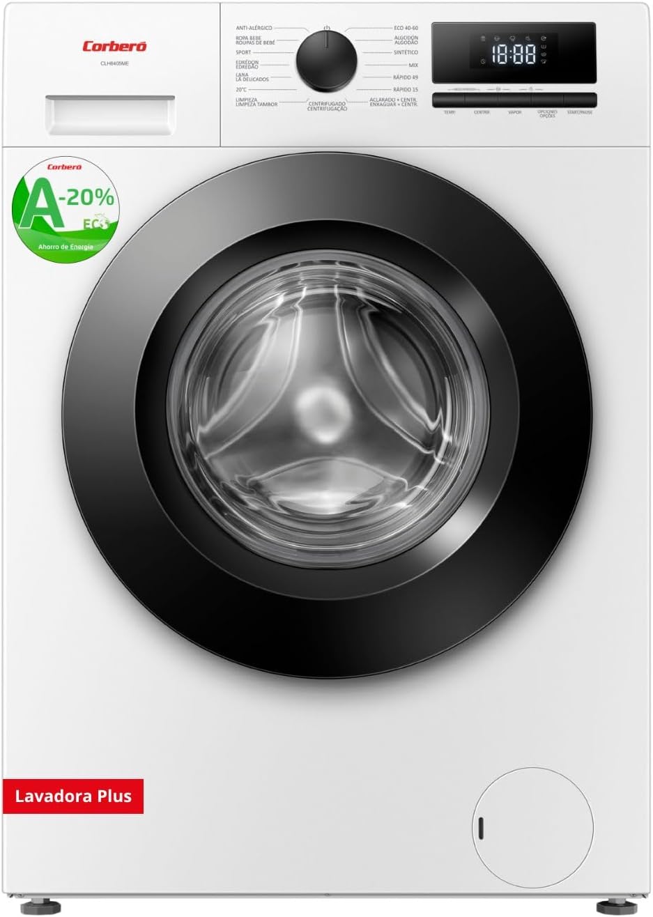 Corberó - Lavadora Carga Frontal Plus 8kg - CLH8405ME - 1400 RPM - Inverter - 15 Programas - Vapor - Antialérgica - Inicio Diferido - Blanco